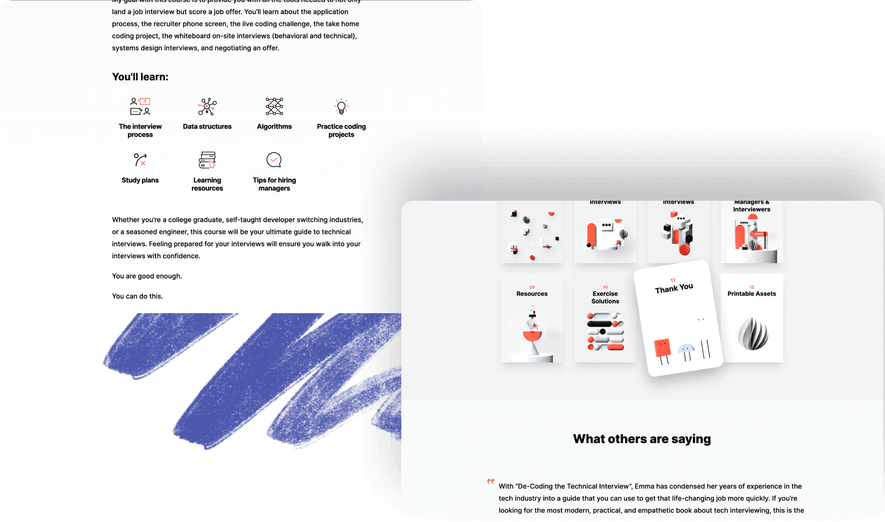 While Emma was interested in designing a full interactive video course, we decided together to first focus on doing a revamp and re-release of the book before building out the Technical Interviews product further.